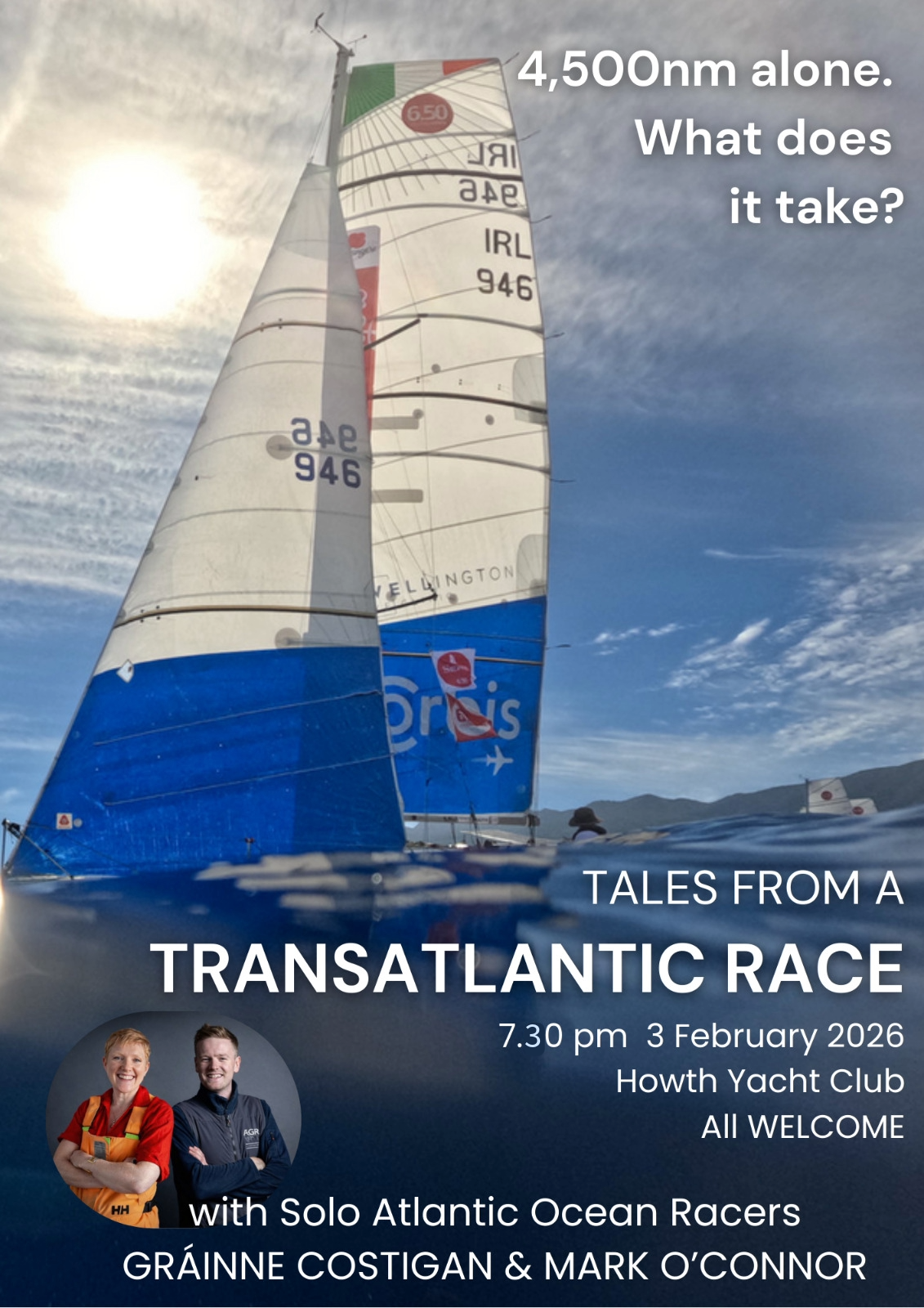 Join us on Tuesday 3rd February for an unmissable HYC Cruising Group Talk entitled Tales from a Transatlantic Race, featuring the adventures and experiences of solo Atlantic racers Gráinne Costigan and Mark O’Connor.