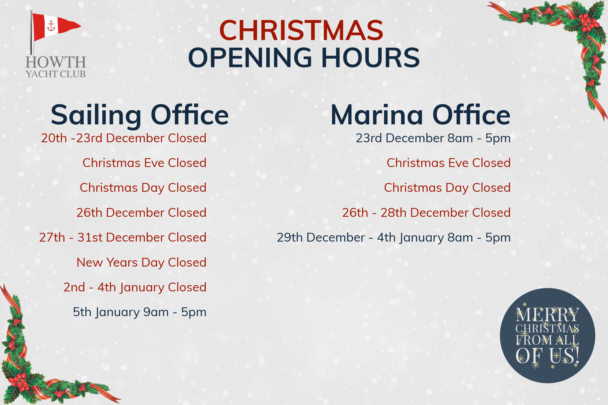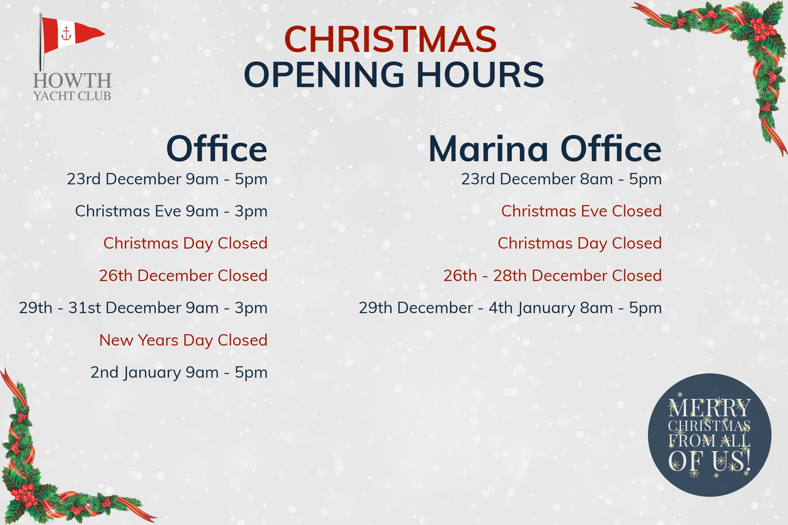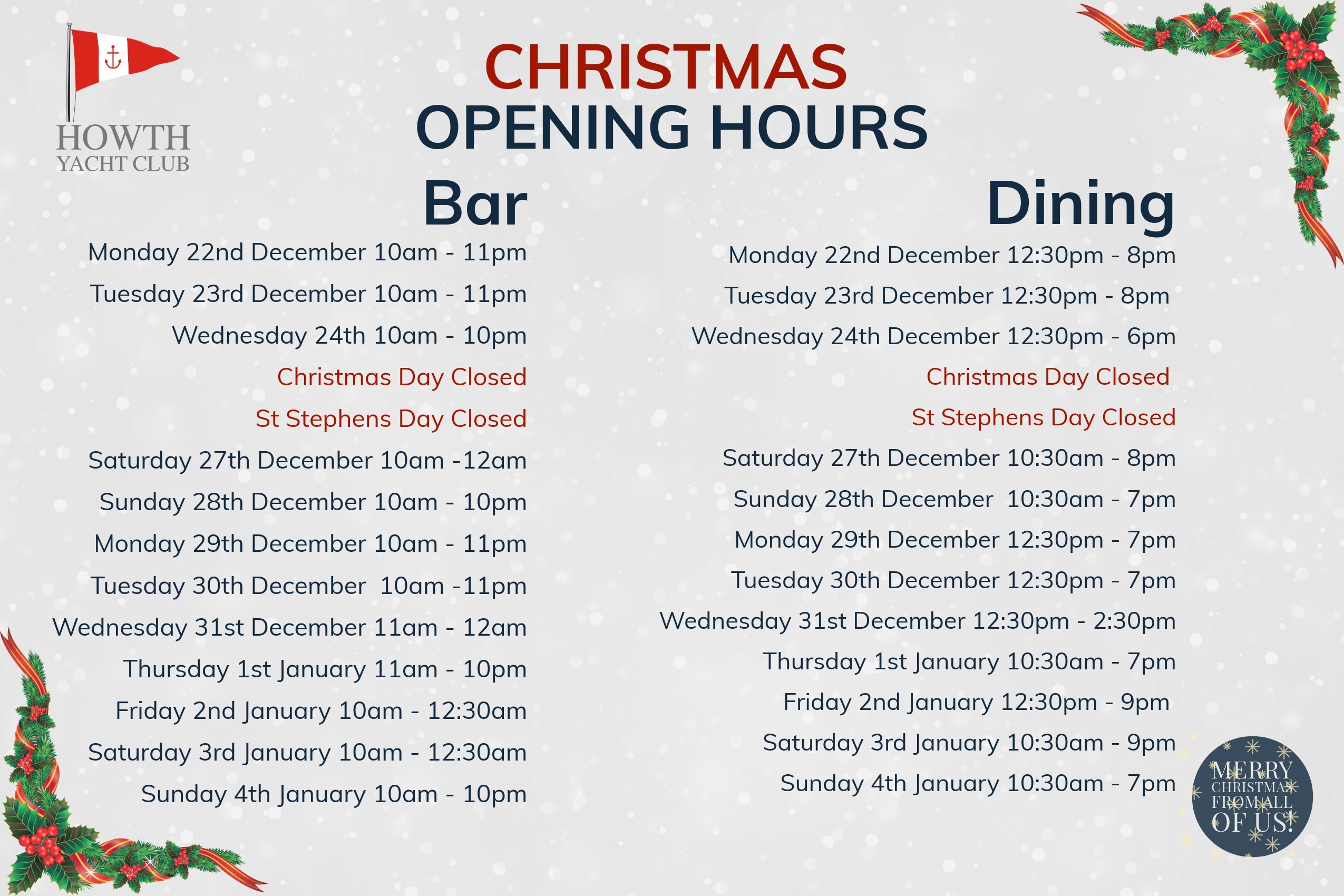 Below are the Club’s opening hours over the Christmas and New Year period.