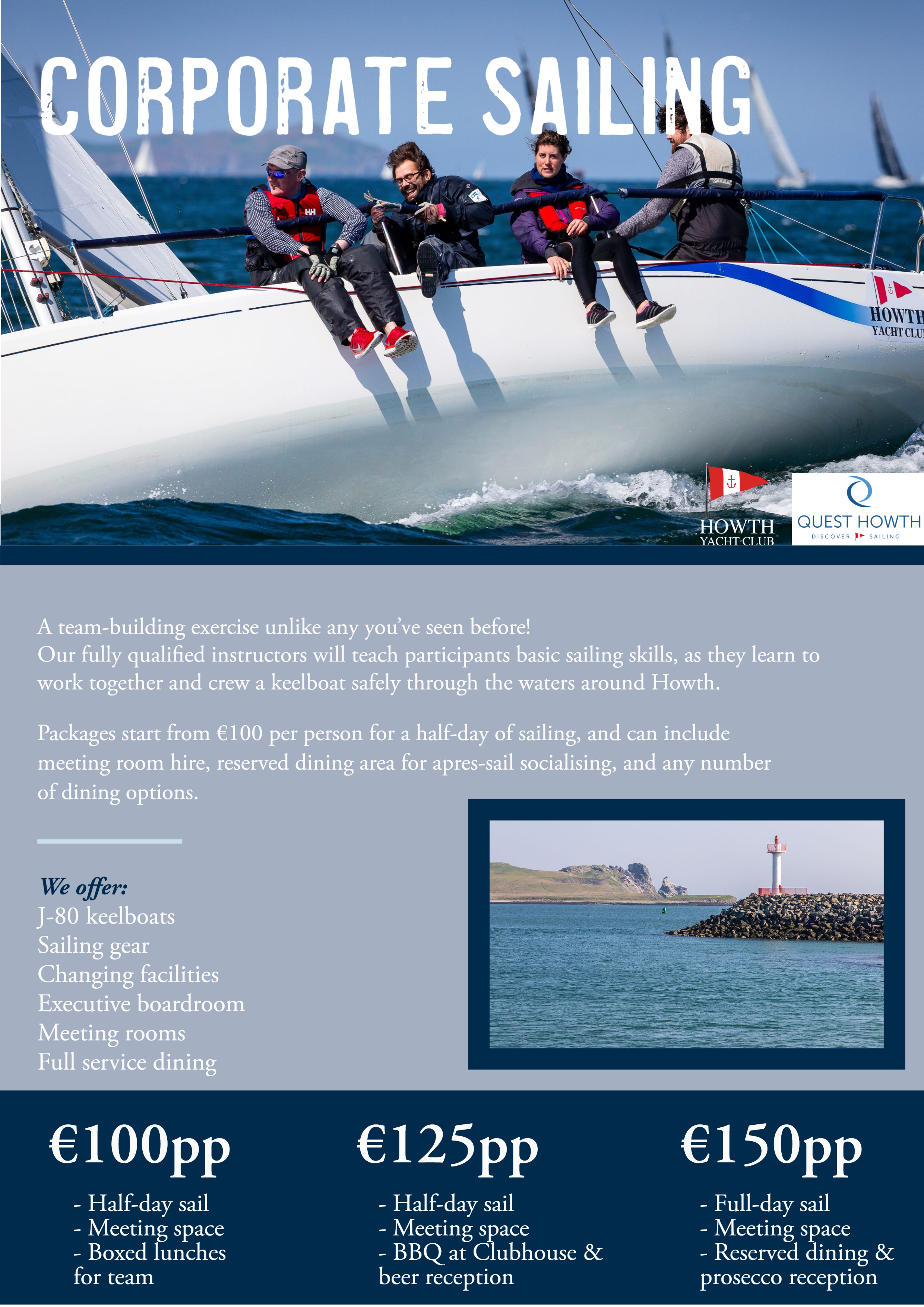 Howth Yacht Club is delighted to offer the opportunity for team-building exercises afloat; ring the office on 01 832 2141, or email [email protected] to find out more!