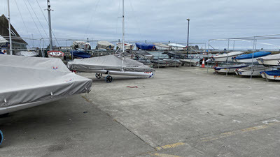 An area of the Dinghy pen has been cleared for visiting Melges 15s (see pic below). It is the area to the left of the slipway. Please put your boat in this area and check in with the Marina staff in the Marina Office.