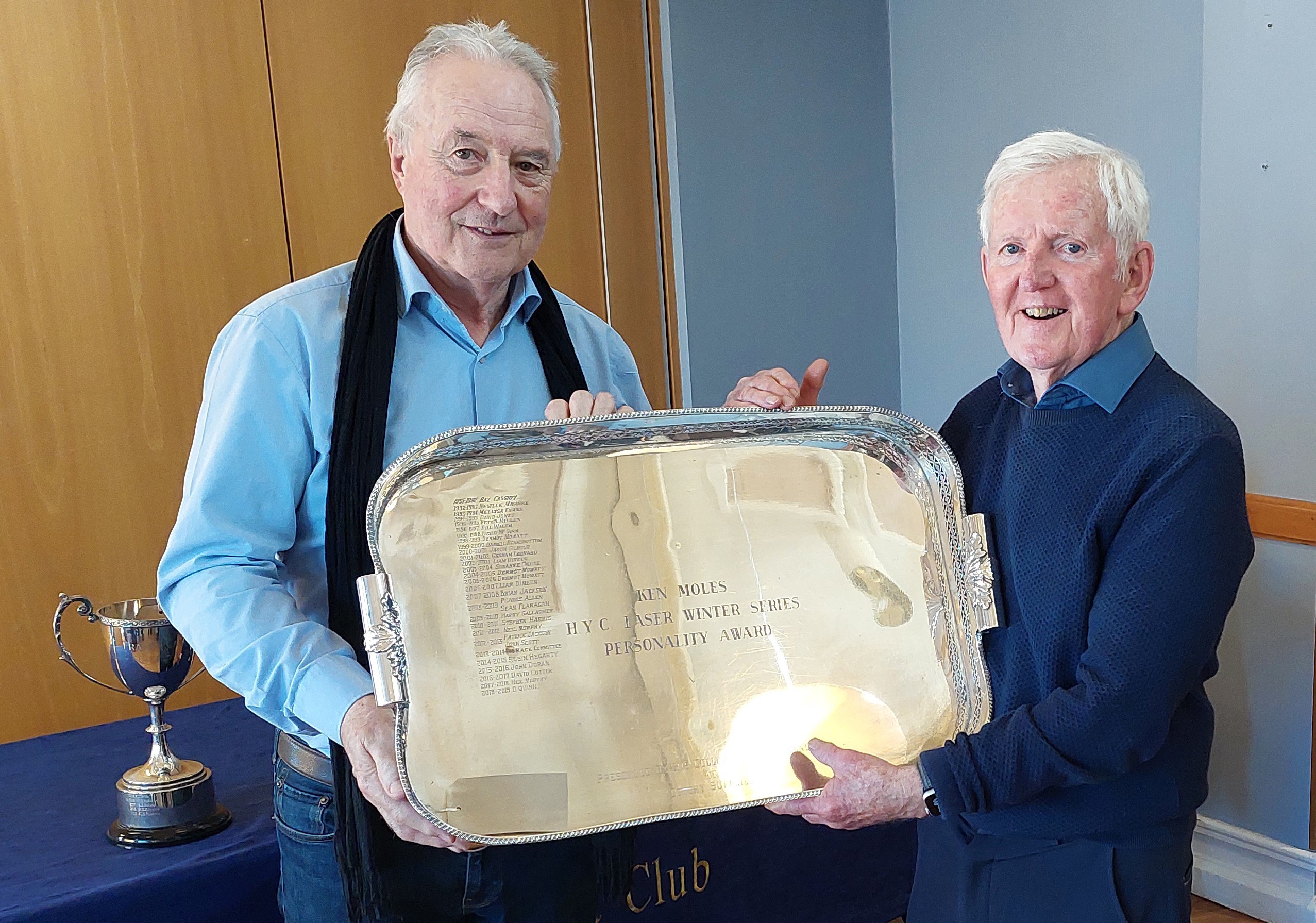 The Personality Award went to Harry Gallagher, whose contribution to the success of the Frostbite Series cannot be overstated. Harry coordinates the race officer roster, liaises with the rescue crews, drafts race documentation and is a regular presence on the Committee Vessel on Sunday mornings – come hail, rain, snow or ice, all of which he has encountered over many years of involvement. In presenting the award, Commodore Kevin Monks and Class Captain Conor Murphy emphasised the sailors’ desire to recognise Harry’s dedication and tireless work for the event. The announcement was met with a huge round of applause.