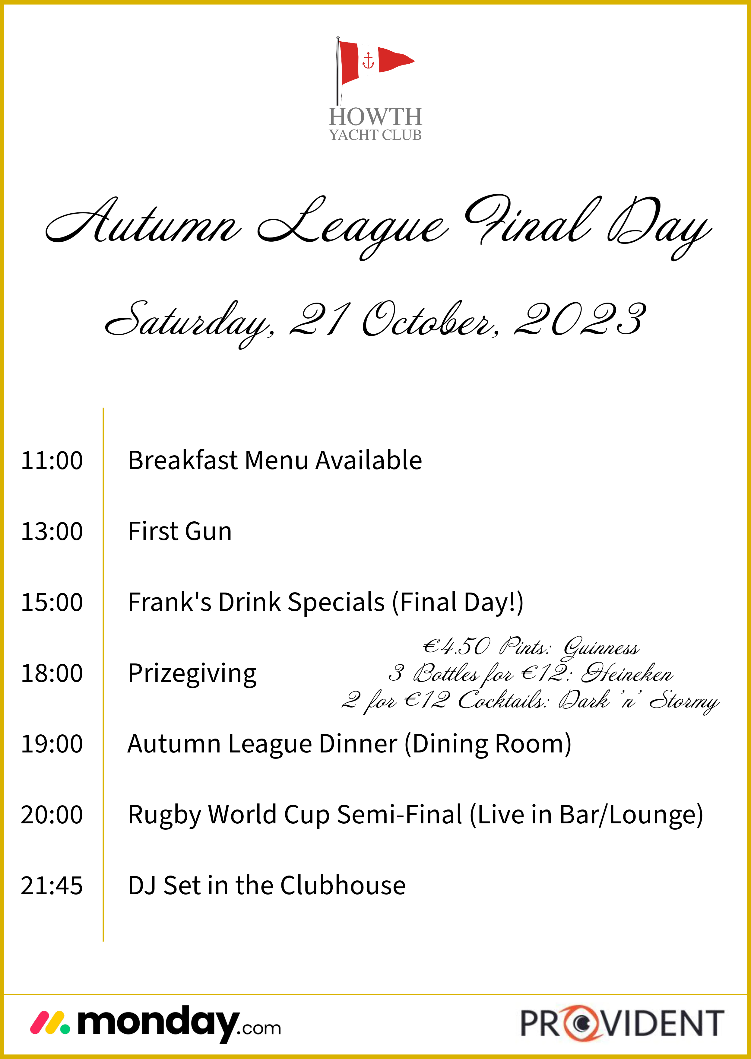 If you wish to book in for the Event Dinner please contact HYC office on [email protected] or 01-8322141.