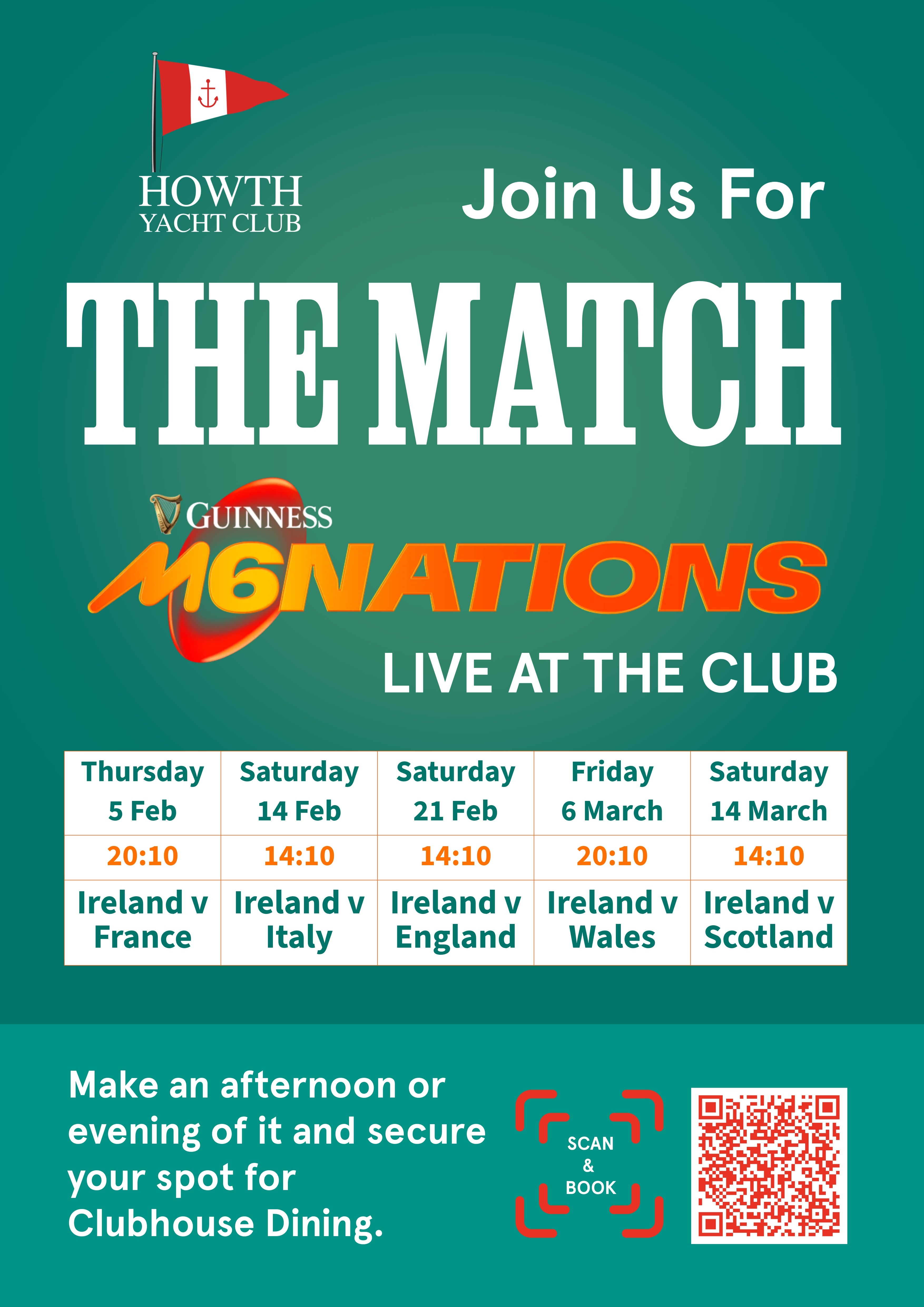 Book your table and join us in the Clubhouse for every game live.